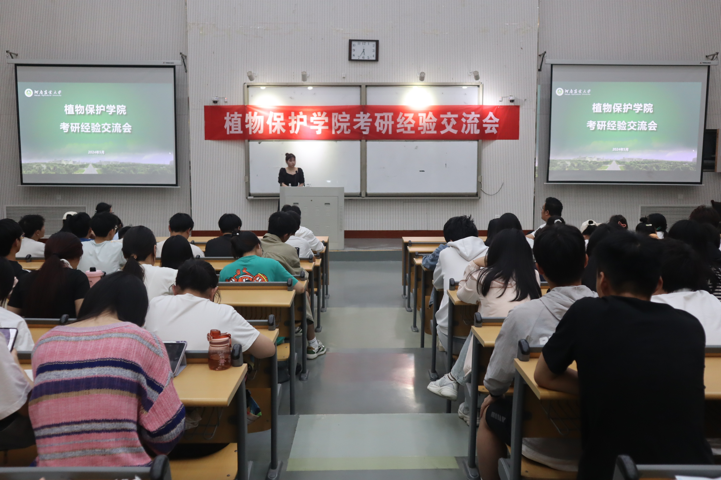 于龙子湖校区繁塔楼CD座一楼大教室5举办“奋斗正当时·考研经验交流会”。21级辅导员王赟飞、21级全体学生及22级学生代表参加会议。会议由学实部副部闫雨婷主持。
